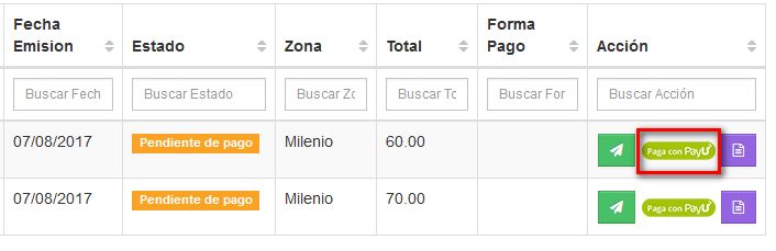 El cupón de pago se puede ver o generar desde el portal del cliente, ingresando a https://wisphub.net/micuenta/ damos click en el botón de payu.